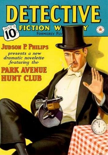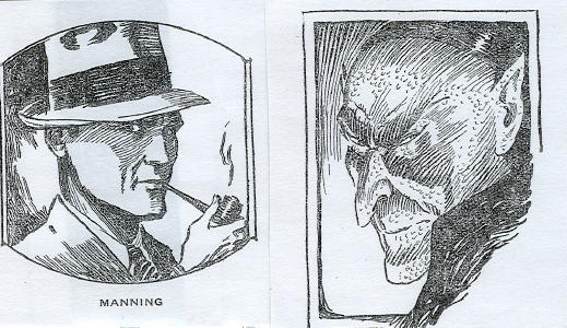 right and below, stalwart fellows both.)Donald Barr Chidsey, later an acclaimed adventure writer, gave us a dozen or so tales of his detectives, Sgt. Wentworth L. Morton, the plodding thinker, and the newly promoted but first-nameless, Detective McGarvey in DFW. Young McGarvey, as the narrator describes him or “Garv” was a brash man-of-action who was mentored by the veteran “Mort,” who knew McGarvey’s father. (The Morton & McGarvey series began in Dime Detective, where Mort’s first name was Wainwright, and they eventually also appeared in Argosy.) Their cases were evenly divided between Morton’s brain power and experience and McGarvey’s quick action with fists or a gun saving the day. These were well-written stories set in what was then the small city of Miami, Florida of the 1930’s. ![]() Erle Stanley Gardner was a frequent contributor to DFW. His best character, Lester Leith, lived lavishly on liberated loot. Each story began with Leith asking his butler, police-spy Edward Beaver, whom Leith called Scuttle because he reminded Leith of a pirate, to read the crime news in each day’s newspaper. Scuttle would report any crimes in which Leith showed interest to his superior, Sgt. Ackley, who was very similar to Dilbert’s pointy-haired boss in his ineptitude, thirst for glory and speed in blaming Scuttle for his failures. Leith would dispatch Scuttle to hire an unemployed and comely actress or dancer or secretary, rent an office or studio and obtain supplies for all. With his storefront con in place, he would misdirect the cops and uncover the identity of the thieves, subsequently heisting their booty and making a contribution to his benevolent fund or local charity, including the police widows and orphans fund. This left the police enraged and baffled as they knew more about the crime than Leith did. Gardner had several other minor characters in DFW over the years. These included an avenger, The Man In The Silver Mask, plus The Patent Leather Kid, Sydney Zoom, and Senor Lobo. Mr. Gardner was a member of the pulp elite: the million words a year writers. Crippen & Landru will soon be publishing anthologies featuring each of these characters. ![]() Carroll John Daly brought the hard-boiled writing style to the forefront of pulpdom, and I believe, even coined the term in an early Race Williams novel. Daly’s primary character in DFW was Frank “Satan” Hall, a police detective whose earlier adventures appeared in Black Mask. Satan’s foes were the heads of the underworld or toughest killers. Daly’s melodramatic writing style carried most of these stories fairly well if one can overlook the supposed terror each villain suffered by looking directly at Satan’s visage. (A glimpse of his visage can be seen to the right.) Of course, these face-to-face encounters almost always preceded the bad boys’ demise. DFW also ran several sagas of that opponent of the parole system, Mr. Strang. In addition, Daly introduced a new character, Twist Sullivan, who disappeared after a few short stories. Judson P(entecost) Philips contributed dozens of stories featuring The Park Avenue Hunt Club in DFW. The Club consisted of big-game hunter John Jericho, actor Geoffrey Saville and the rotund, intellectual Arthur Hallam with occasional assists from their Oriental servant, Wu. They had sources all over New York and were aided by the police hierarchy despite being officially wanted for murder and other crimes. When the police couldn’t help or were in on the crime, The Hunt Club was the group to call. Mostly portrayed in novelettes, their adventures were well-crafted and exciting. ![]() Hannibal Lecter is the super villain of fiction these days. Adventure writer J. Allan Dunn gave us dozens of stories starring The Griffin in DFW. The Griffin was the king of extortionists using a simple threat: Pay me $50,000.00 or you will die on this date and time. The wealthy didn’t get that way by giving their money away. Instead, they hired bodyguards or put their faith in police protection, including being placed in a solitary jail cell. No matter, they all died at the Griffin’s predicted time. ![]() The Griffin had enslaved dozens of people, having learned of their most terrible secrets and blackmailed them into virtual drones. The uneducated ones became assassins who were frequently killed themselves after the murders. Meanwhile his scientists were forced to develop slow-acting but precisely timed poisons. Gordon Manning, who had sworn to get The Griffin, was thrifty, brave, clean, reverent, obedient, cheerful. You get the idea. Time after time, he failed to stop the murders or get the Griffin. Finally, the readers had had enough, and The Griffin was captured!! Only to escape by the end of the story. The stories continued with the usual plot for a few more appearances. ![]() I don’t know who was kidding whom, but author Eugene Thomas was involved in an odd bit of history of the magazine. DFW always had a couple of true stories in each issue. Thomas wrote a “true” story with the catchy name of “The Lady From Hell.” The Lady, Vivian Legrand, was a former blackmailer who had even instigated the murder of her father but gained immunity from prosecution by recovering a letter that the British Secret Service had wanted for some time. Soon the true story section of DFW had a Lady From Hell story in every couple of issues, featuring the red-haired, breath-taking siren in yet another intrigue. How could one woman in the less-liberated 1930’s be so involved, written about so often, and still be an effective informant? Well, she couldn’t. The magazine fessed up and The Lady From Hell moved to the fiction section. Did Thomas scam DFW or were the editors hornswoggling the readers? It remains a mystery. ![]() Milo Ray Phelps gave DFW readers their comic relief with each appearance of his absent-minded safecracker, Fluffy McGoff. Fluffy drove Sam, his partner and scribe, mad by bungling one heist