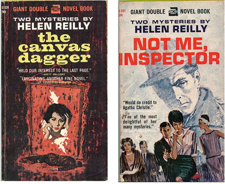 [3-in-1 volume]. Paperback reprint: Dell #397, ca.1950, mapback.“Dark Exit.” Novelette, Mystery Book Magazine, Fall 1948. Note: See the entry for “Black Reminder” below. “Perilous Escort.” Novelette, Short Stories, October 25, 1948. Reprinted as “The Perilous Journey,” Mike Shayne Mystery Magazine, May 1962. “Black Reminder.” Story, Mystery Book Magazine, Spring 1949. Note: Both this story and “Dark Entry” may have been expanded to later novels, but which, if any, is not known. Whether Inspector McKee appears in either or both is also unknown. Staircase 4*. Random House, 1949; hardcover reprint: Detective Book Club, n.d. [3-in-1 volume]. Paperback reprint: Dell #498, ca.1951, mapback. Murder at Arroways*. Random House, 1950; hardcover reprint: Mystery Guild [book club], n.d. Paperback reprint: Dell #576, ca.1952, mapback. Appeared serially in several newspapers as “The Black Ring.” Lament for the Bride*. Random House, 1951; hardcover reprint: Detective Book Club, n.d. [3-in-1 volume]. Paperback reprint: Dell #621, ca.1952, mapback. The Double Man*. Random House, 1952; hardcover reprint: Detective Book Club, n.d. [3-in-1 volume]. Paperback reprint: Dell #732, ca.1953. The Velvet Hand*. Random House, 1953; hardcover reprint: Mystery Guild, n.d. [book club]. Advance newspaper appearance: Star Weekly [Toronto], Dec 20, 1952. No paperback edition. Tell Her It’s Murder*. Random House, 1954; hardcover reprints: Detective Book Club, n.d. [3-in-1 volume]; Walter J. Black, n.d. Paperback reprint: Bestseller Mystery #B-201, n.d. [unabridged]. Compartment K*. Random House, 1955; hardcover reprint: Detective Book Club, n.d. [3-in-1 volume]. Paperback reprints: Ace #G-546, ca.1963; Macfadden, 1971; Manor, n.d. The Canvas Dagger*. Random House, 1956; hardcover reprint: Detective Book Club, n.d. [3-in-1 volume]. Paperback reprints: Bantam #1858, 1959; Ace Double #G-531, ca.1965, abridged, bound with Not Me, Inspector; Macfadden, 1970; Manor, 1974. Ding Dong Bell*. Random House, 1958; hardcover reprint: Detective Book Club, n.d. [3-in-1 volume]. Paperback reprints: Ace Double #G-528, ca.1965, bound with Certain Sleep; Macfadden, 1971, Manor, 1974. Not Me, Inspector*. Random House, 1959; hardcover reprint: Detective Book Club, n.d. [3-in-1 volume]. Paperback reprint: Ace Double #G-531, ca.1965, abridged, bound with The Canvas Dagger; Macfadden, 1971. Follow Me*. Random House, 1960; hardcover reprint: Detective Book Club, n.d. [3-in1volume]. Paperback reprints: Ace ca. #G518, 1965, bound with The Opening Door; Macfadden, 1971. Advance newspaper appearance: Star Weekly [Toronto], May 21, 1960. Certain Sleep*. Random House, 1961; hardcover reprint: Detective Book Club, n.d. [3-in-1 volume]. Paperback reprints: Ace Double #G-528, ca.1965, bound with Ding Dong Bell; Macfadden, 1971; Manor , 1974. Advance newspaper appearance: Star Weekly [Toronto], June 17, 1961. The Day She Died*. Random House, 1962; hardcover reprint: Detective Book Club, n.d. [3-in-1 volume]. Paperback reprints: Ace #G-536, ca.1965; Macfadden, 1970. Comment: The Macfadden edition is surprisingly hard to find. Only one copy is listed on ABE ($14.35). Books written as by Kieran Abbey. Run with the Hare. Charles Scribner’s Sons, 1941. Comment: Extremely scarce. The two copies listed on ABE are priced at $175 and $300 respectively. And Let the Coffin Pass. Charles Scribner’s Sons, 1942. Comment: Also very scarce, but the three copies listed on ABE range in price from $49.50 to only $70. Beyond the Dark. Charles Scribner’s Sons, 1944; hardcover reprint: Detective Book Club, n.d. [3-in-1 volume]. Paperback reprint: Dell #93, ca.1945, mapback. References: www.abebooks.com Michael L. Cook, Monthly Murders Michael L. Cook & Stephen Miller, Mystery, Detective and Espionage Fiction: A Checklist Allen J. Hubin, Crime Fiction IV www.magicdragon.com ( The Ultimate Mystery / Detective Web Guide ) FOOTNOTE. From Bob Riedel: I noticed that the chronological order of two titles are transposed. McKee of Centre Street and The Line-Up both came out in 1934, as you had noted, but McKee of Centre Street was published first. The first edition bears two publisher’s notices that “... The Line-Up will appear in the fall of 1934.” And although the McKee character appeared in two earlier novels, the promotional text in McKee of Centre Street goes to some lengths to present the book as “the first of the cases of Inspector McKee of Centre Street ... ,” with the strong implication that this is the first McKee book. Thanks also to Peter Enfantino, Richard Hall and Phil Stephensen-Payne for the corrections and additions to the bibliography which they provided. INQUIRY. As indicated in two notes above, there are still some open questions regarding Helen Reilly’s short fiction. Any additional information would be appreciated. _____________________________________ YOUR COMMENTS ARE WELCOME.