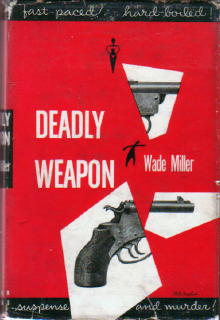 It seems that by the application of a literary Gresham’s Law, bad private detectives drive out good ones. How else can one explain the short career of Max Thursday who left the scene after only six novels, published 1947 to 1951, while Mike Hammer, with his appeal to the horny teenager in many of us, went on so much longer. Thursday was the creation of Wade Miller, a joint pseudonym of Robert Wade (1920- ) and Bill Miller (1920-1961). The first Wade Miller novel, Deadly Weapon (1946) is a precursor to the Max Thursday series. Though Thursday never appears, a leading protagonist is his good friend, Austin Clapp, head of San Diego’s Homicide Squad, investigating a series of murders beginning with one in a local burlesque theatre. Anthony Boucher called it a “highly satisfactory debut” and praised its ending; Edward D. Hoch has called that ending “unique.” Clapp appears in all the