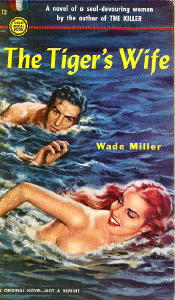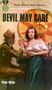 Of course, therein lies the rub. Nobody believes Ed’s glib explanation that Emily is his half-witted sister and must be protected. While Ed hunts for gainful employment, Emily lounges around the cabin, unsuspectingly attracting all sorts of men trouble. Among her ardent admirers is a married alcoholic lout named Cory Sheridan. Ed, meantime, fixes his romantic interests on a local business lady, Marge. Cory Sheridan, through a sly contrivance transparent to all except Emily, lures her to his mansion when his wife is out of town. The seduction scene is brief. Later, Cory is discovered murdered and suspicion falls on the hapless Emily. Again, Ed is forced to go to incredible lengths to rescue her. Without giving away the novel’s ending, all this conflict plays out in a sensitive while unsentimental manner. Ed remains a sympathetic protagonist. All the hallmarks making for effective hardboiled writing are present here. Dialogue is laconic; action verbs are visceral; monologues are streamlined. The writing style is unadorned and plain but the prose is not parched and parsed to the point of becoming soulless or tedious. I don’t grow tired of reading it. By contrast, most paper blockbusters in every supermarket throughout America bore me to tears. One aspect I find appealing about a Gold Medal book is the assemblage of 1950s lore and pop culture. You can almost see and smell and hear the insides of old movie theaters, cars, and rented cabins. Take rented cabins, for instance. Today I drive by the cinderblock ruins to such a refuge. I wonder, Who lodged there? Now I know. Ordinary but desperate folks like Ed and Emily Darnell. With highway expansion slated in a few years, these ruins will be bulldozed into oblivion. Another Gold Medal book rich in its 1950s details is John D. MacDonald’s Dead Low Tide (1953). Both books evoke nostalgia but the kinetic plot of each tale leave little time for savoring it. Wade Miller wrote and published about the same time as such hard-boiled writers as Mickey Spillane. The Wade Miller novels, however, are stronger on story line and characterization. Perhaps their one-two punch approach to the writing process resulted in creating novels more accomplished in these aspects. Wade Miller titles: ![]() Deadly Weapon. Farrar, hc, 1946. Guilty Bystander. Farrar, hc, 1947. [PI Max Thursday.] Pop Goes the Queen. Farrar, hc, 1947. aka Murder–Queen High, Graphic, pb, 1949. Fatal Step. Farrar, hc, 1948. [PI Max Thursday.] Uneasy Street. Farrar, hc, 1948. [PI Max Thursday.] Devil on Two Sticks. Farrar, hc, 1949. aka Killer’s Choice, Signet, pb, 1950. Calamity Fair. Farrar, hc, 1950. [PI Max Thursday.] Murder Charge. Farrar, hc, 1950. [PI Max Thursday.] Devil May Care. Gold Medal, pbo, 1950. Stolen Woman. Gold Medal, pbo, 1950. ![]() The Killer. Gold Medal, pbo, 1951. The Tiger’s Wife. Gold Medal, pbo, 1951. Shoot to Kill. Farrar, hc, 1951. [PI Max Thursday.] Branded Woman. Gold Medal, pbo, 1953. The Big Guy. Gold Medal, pbo, 1953. South of the Sun. Gold Medal, pbo, 1953. Mad Baxter. Gold Medal, pbo, 1955. Kiss Her Goodbye. Lion, pbo, 1956. Kitten With a Whip. Gold Medal, pbo, 1959. Sinner Takes All. Gold Medal, pbo, 1960. Nightmare Cruise. Ace, pbo, 1961. aka The Sargasso People (British hc) The Girl From Midnight. Gold