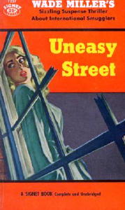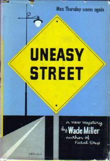 Tijuana, Mexico. The plots of the Thursday novels are not wildly original, but they generally have some element that makes them unusual. In Uneasy Street (1948) Thursday is hired to deliver an antique music box which proves to contain $100,000. Fatal Step (1948) has a well-realized carnival setting, and in Murder Charge (1950), arguably the best book in the series, Thursday has to infiltrate a criminal syndicate. The Thursday books were all published in hardcover by Farrar, Straus. After that series ended, Miller began publishing paperback originals, mainly for Gold Medal, and in 1955 they began an association with Dodd Mead, publishing in hardcover under the pseudonym “Whit Masterson.” Their few short stories are also noteworthy. “Invitation to an Accident” (1955) and “A Bad Time of Day” (1956) won Second Prizes in EQMM’s then-annual contest. A later story, the “The Memorial Hour” (1960), is even better but was published in year when the contest was not held. In 1952 Dorothy B. Hughes, one of our best critics and novelists, said of Wade Miller, “No one writes the hard-boiled mystery better.” Yes, there was Hammett and Chandler, but she wasn’t far off the mark. NOTE: This is a