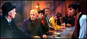 Secondly, I should caution prospective viewers that this film takes a very retro view of gays. The movies openly recognized homosexuals in the late 1960s, but they were almost invariably portrayed unsympathetically and even demeaningly. Like everything else in the movie, PJ turns this up a notch, with Severn Darden in a performance he should be heartily ashamed of as a lisping, mincing, quivering sissy. Add to this an extended fight in a gay bar that looks like one of the lesser circles of Hell, and you can see how gays — or those who believe they should be treated like human beings — could get quite offended here.