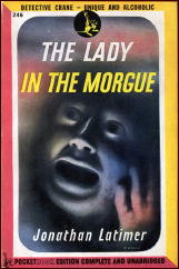 JONATHAN LATIMER – The Lady in the Morgue. Doubleday Doran/Crime Club, hardcover, 1936. Reprint editions include: Pocket Books #246, paperback, 1944. Dell Great Mystery Library, paperback, 1957. IPL, paperback, 1988. Film: Universal, 1938 (Preston Foster as Bill Crane, Patricia Ellis, Frank Jenks as Doc Williams).